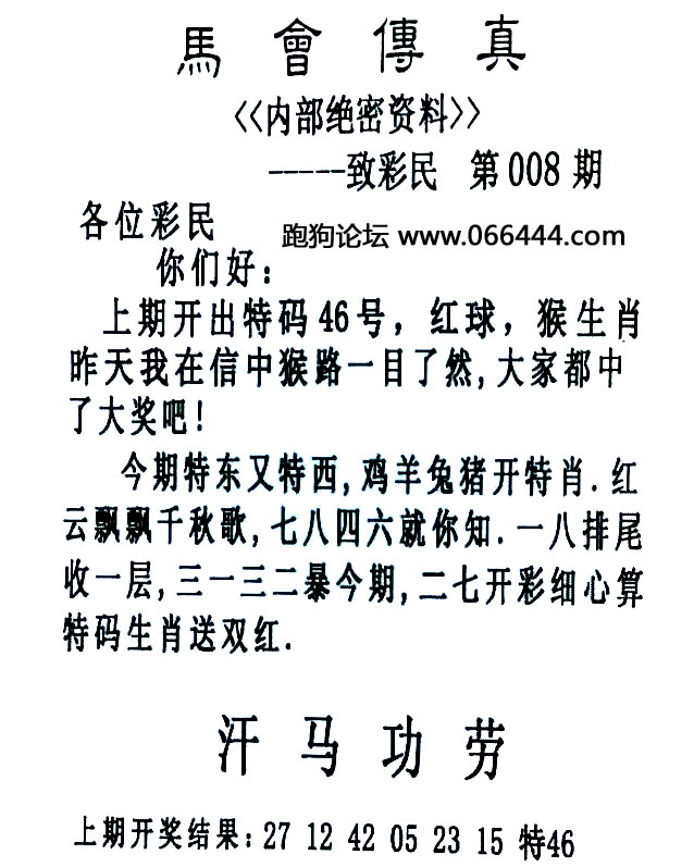 008期:必中六肖 |