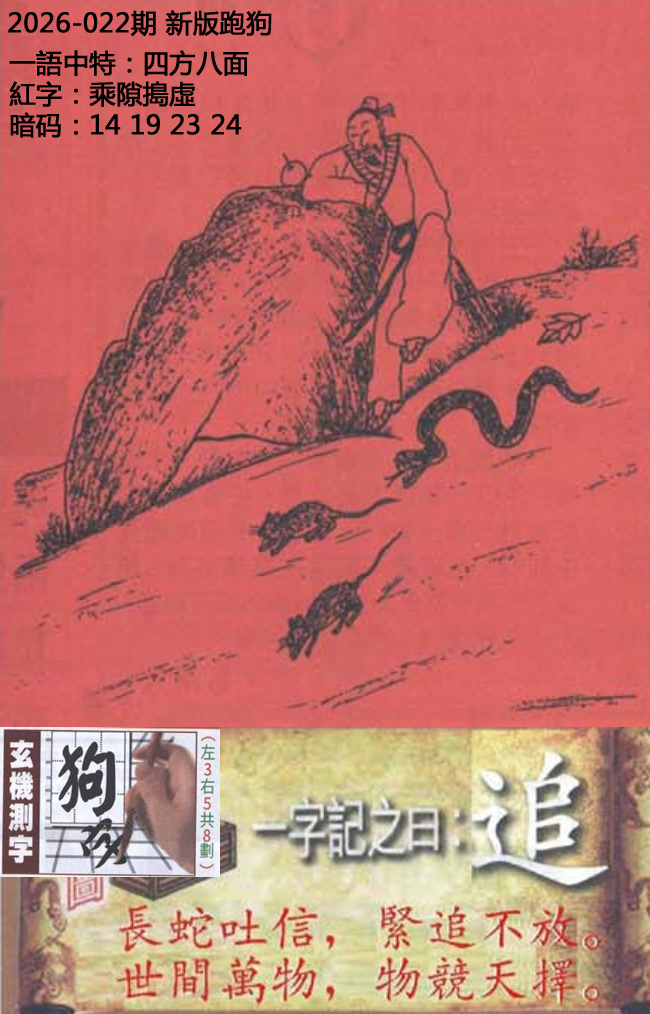 022期六合皇信箱红字【乘隙搗虛】《暗码:14 19 23 24》开
