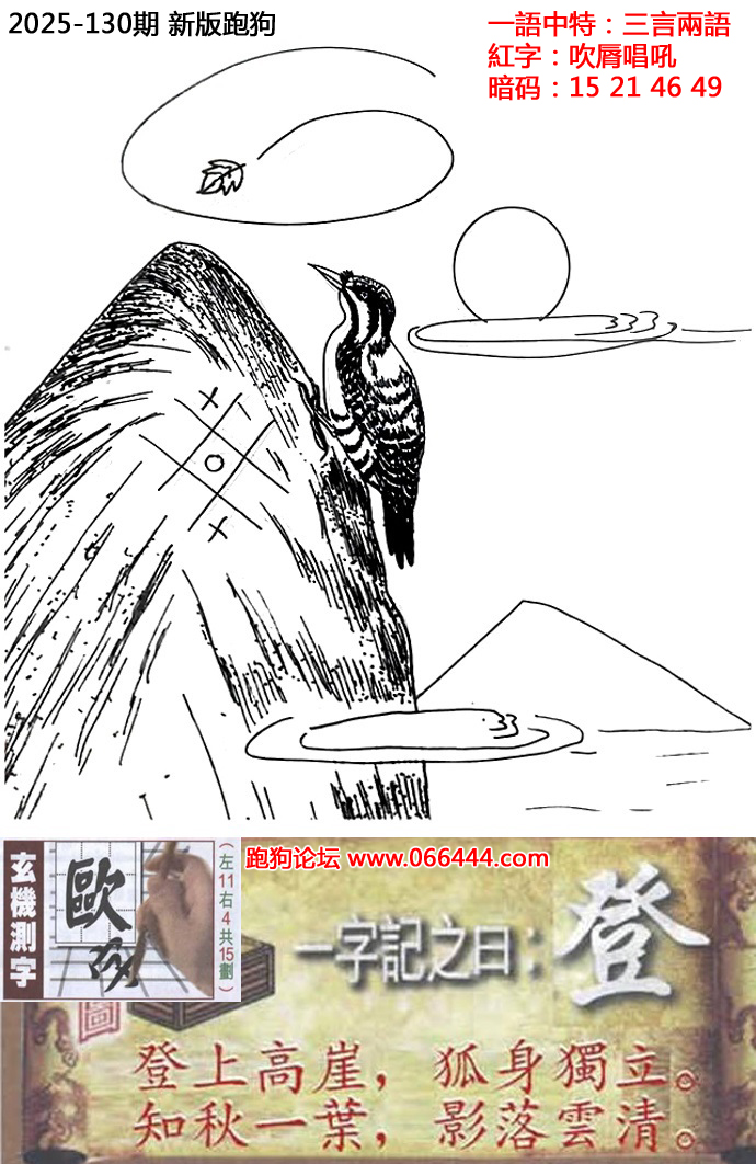 130期新版跑狗一字記之曰:【登】