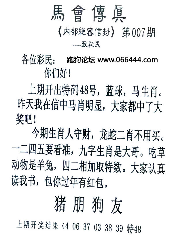 007期:香港跑狗论坛原創-【精准铁杀10码】→资料已公開 跑狗出版社