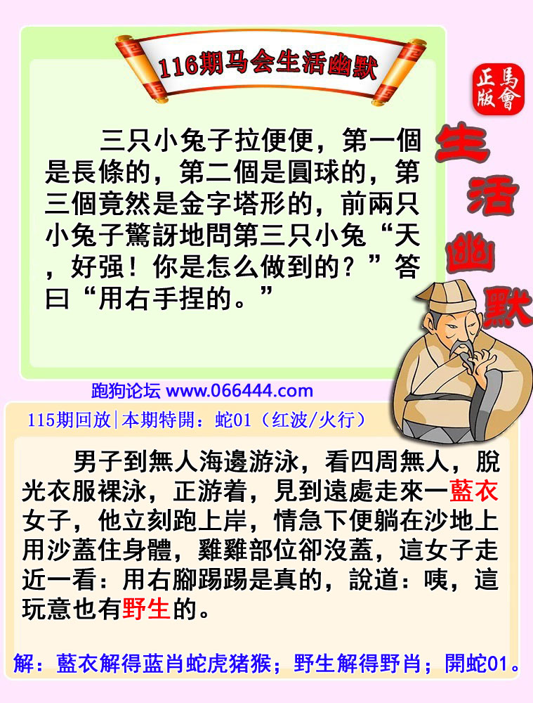 116期:跑狗论坛(成语平特解一肖)【鸡兔同笼】 |