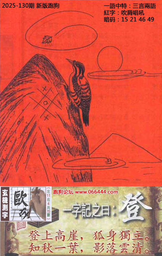130期六合皇信箱红字【吹脣唱吼】《暗码:15 21 46 49》开
