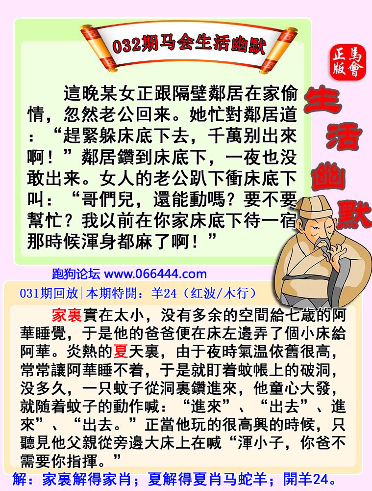 解:文中平时看着像小绵羊一样温顺的老公,没想到藏着私房钱,被老婆揪出来后,瞬间慌得脸色发白,本期解得羊肖。 |